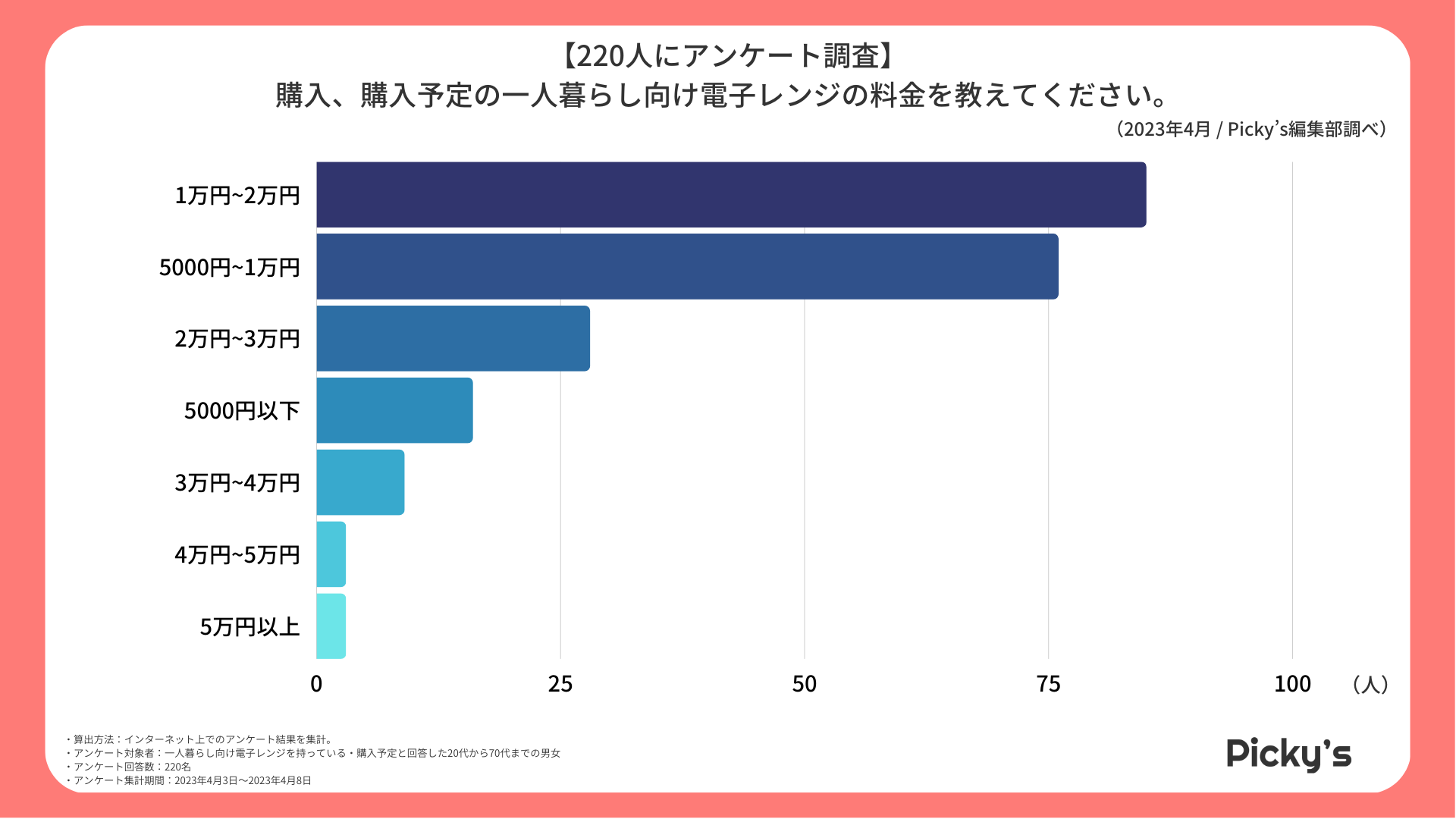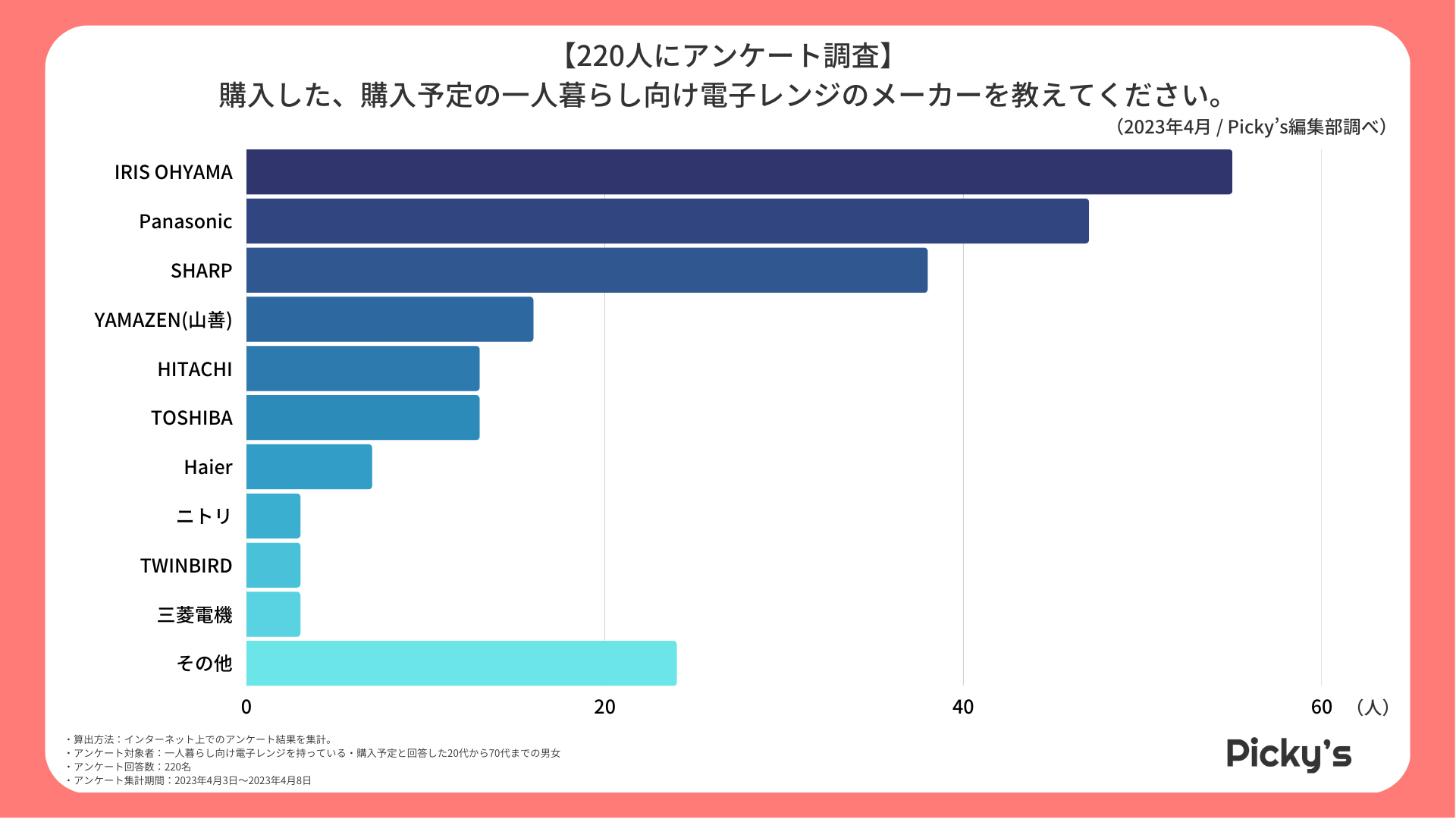 「Picky’s」は、インターネットショッピングにおいて、購入前に試せない・選ぶべきものがわからないという課題の解決を目標に、あらゆる商品のおすすめランキングや検証レビューを紹介するサイトです。このたびPicky’s(https://rentry.jp/note/)では、春の新生活に先駆けて、一人暮らし向け電子レンジについてインターネット上でアンケート調査を行いましたので発表いたします。