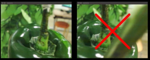 AIがピーマンの手前に枝を認識した場合に収穫アプローチを中断し、枝切りを防止する機能を実装しました。