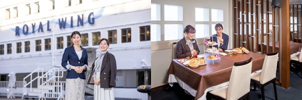 「ロイヤルウイング」は2000年に就航し、誕生日や結婚式など、特別な日の記憶を多くの人に残しています。洋上では赤レンガ倉庫、みなとみらい、横浜ベイブリッジなどがお楽しみいただけます。90分間のティークルーズにおいて、自分だけのために作ったオシャレな洋服と共にゆったりとした、ひとときをお過ごしください。