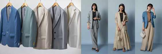 ジャケットに合わせるインナーも強化しており、人気のボウタイをオシャレに仕立てる生地のバリエーションも増加しています。