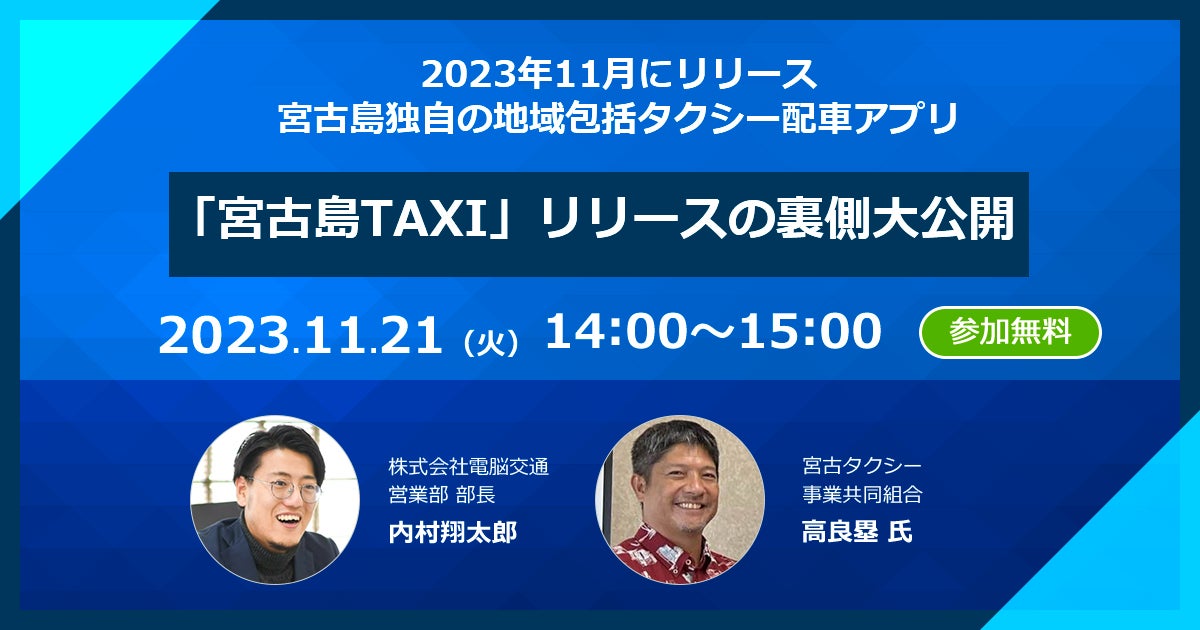 本セミナーでは、宮古タクシー事業協同組合の宮古タクシー事業協同組合 高良塁 様にご登壇いただき、「宮古島TAXIアプリ」の運用事例をお話しいただきます。「宮古島TAXIアプリ」の概要や運用方法はもちろん、オーバーツーリズム対策や地域経済活性化につながる地域アプリ活用法をご紹介いたします。