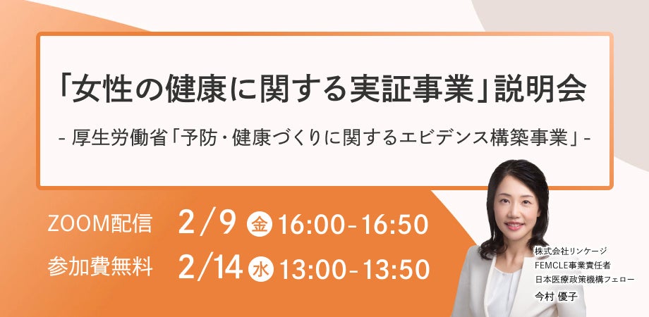 リンケージでは、当実証事業にご参画いただける企業を募集します。実証事業へのご参画や「FEMCLE」の詳細について、以下のとおりオンラインでの説明会を開催いたしますので、ご興味のある方はお申込みをお願いいたします。