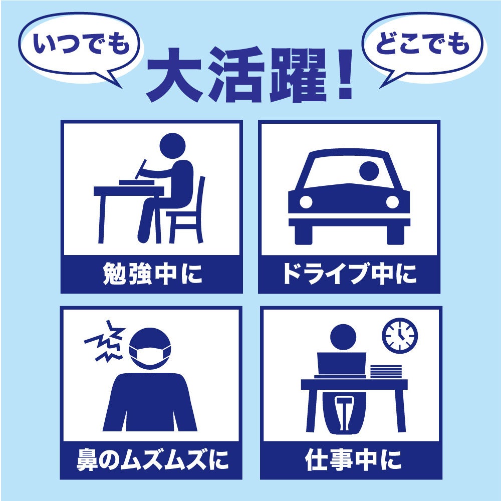 気分のリフレッシュをはじめ、勉強中や運転中、マスク着用時の不快感対策アイテムとして親しまれています。