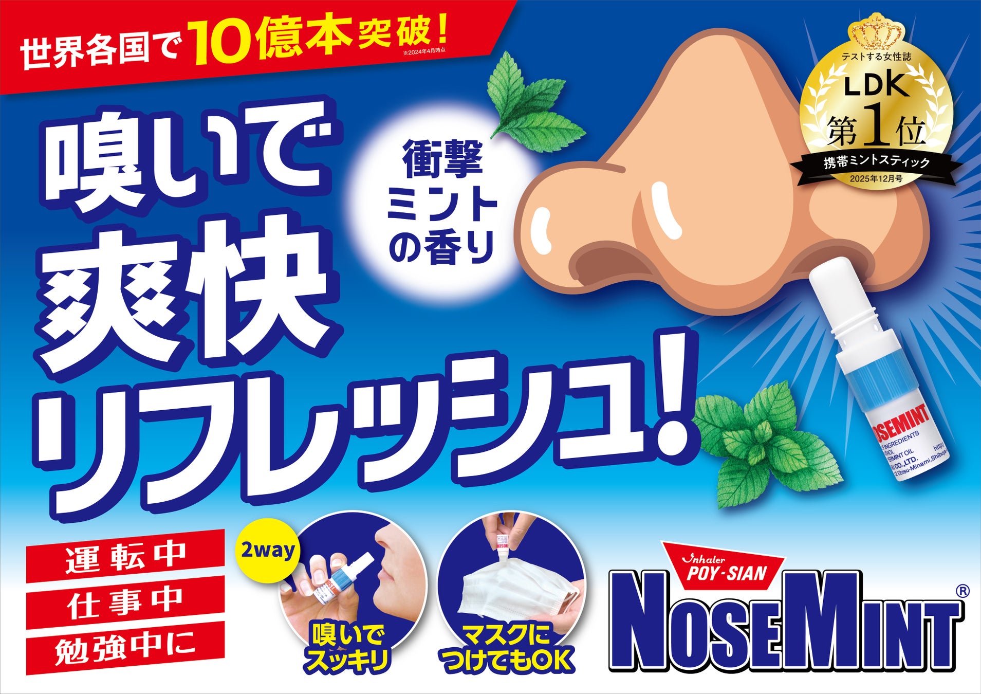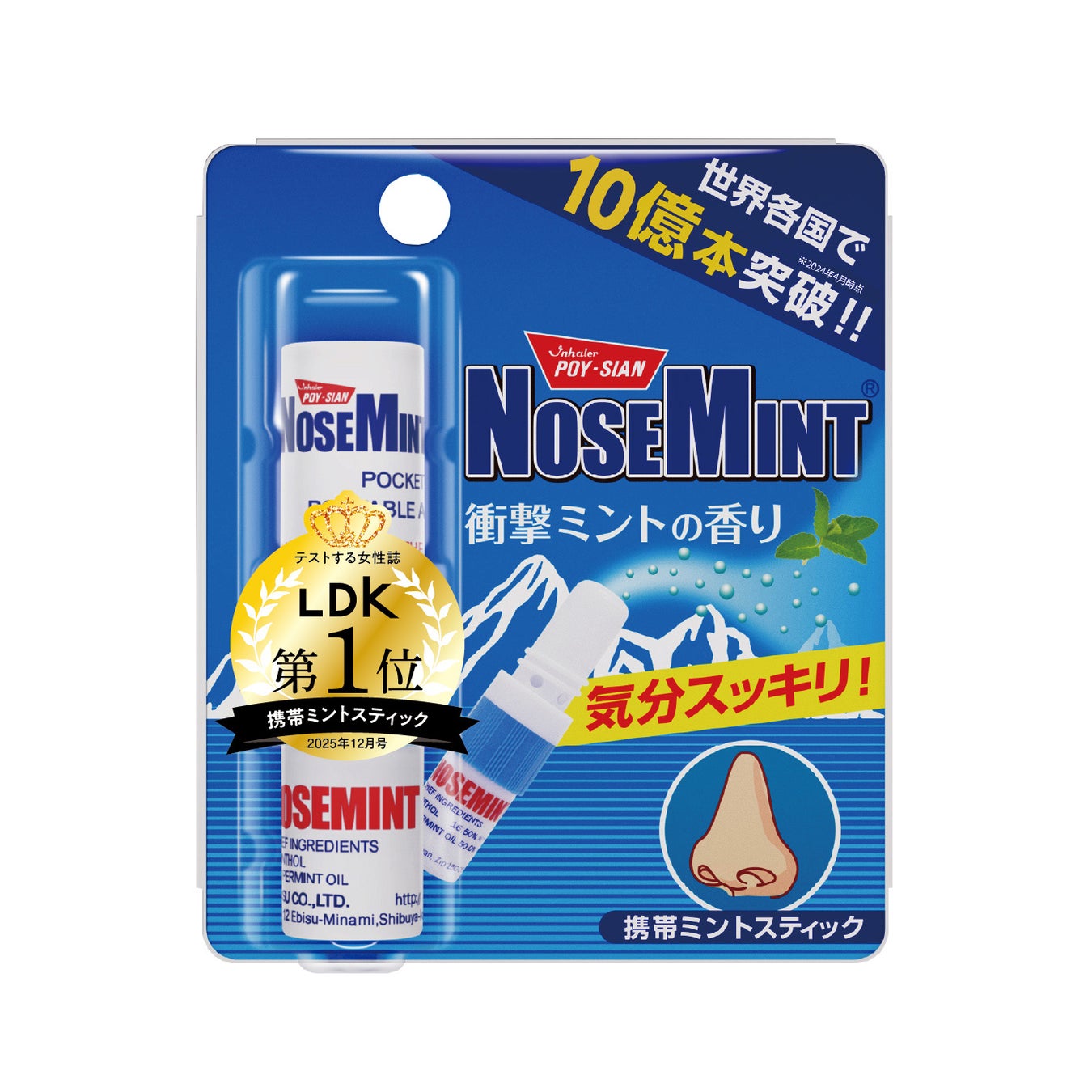 「NOSEMINT(ノーズミント)」は、〝いいモノ〟を読者に届ける『テストする女性誌』LDK2025年12月号に掲載された「鼻づまりサポートグッズ」特集において、携帯ミントスティック部門1位を獲得しました。