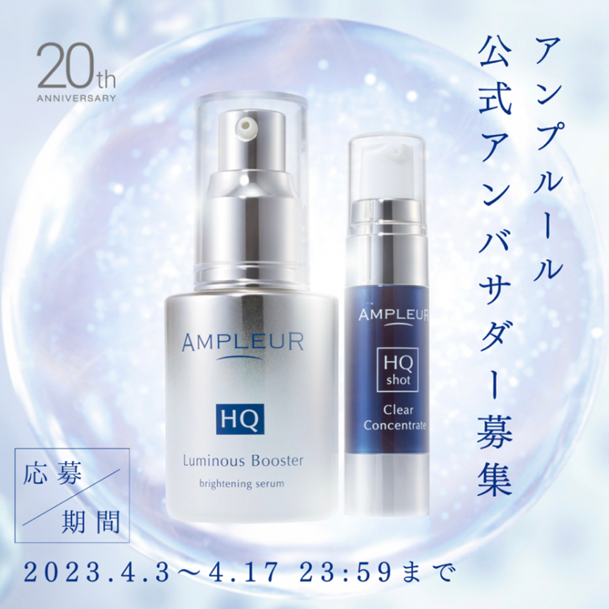 クリニカルソリューションコスメ「AMPLEUR(アンプルール)」を展開する株式会社ハイサイド(本社:東京都目黒区中目黒)/代表取締役会長兼CEO:高瀬武英 代表取締役社長:根津崇)は、2023年4月3日(月)より「アンプルール公式アンバサダー」を募集開始いたしました。