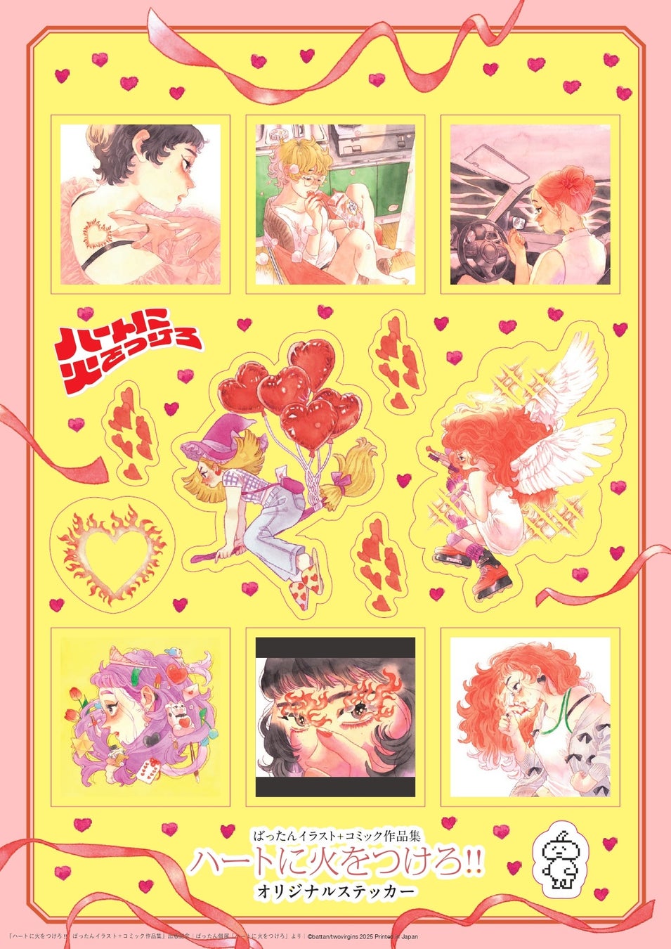 株式会社トゥーヴァージンズ(東京都千代田区)は、2025 年 10 月 17 日(金)より書籍『ハートに火をつけろ!! ばったんイラスト+コミック作品集』(ばったん著)のイラスト原画展を、高円寺・蟹ブックスにて開催するとともに、出版記念オリジナルグッズを販売いたします。