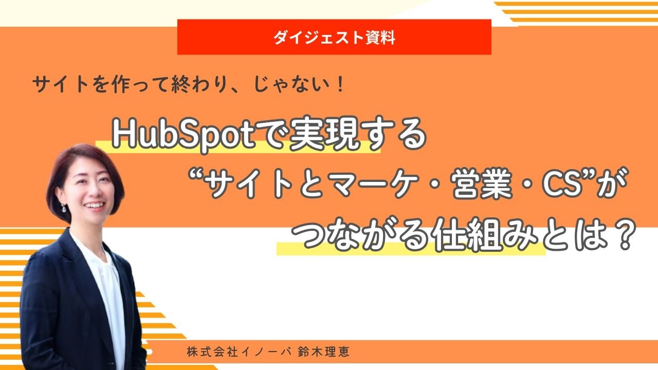 株式会社イノーバ(本社:東京都新宿区、代表取締役:宗像 淳、以下イノーバ)は、2025年6月19日に開催した無料オンラインウェビナー「サイトを作って終わり、じゃない!HubSpotで実現する“サイトとマーケ・営業・CS”がつながる仕組みとは?」のダイジェストレポートを公開しました。