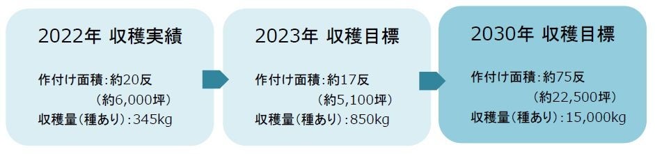 「国産綿復活プロジェクト」 は、日本の綿自給率1%を目指しています。また、2030年までに、本プロジェクトにて生まれた綿をプリスティンの製品に5%(15トンの収穫量)入れ込むことを目標としています。