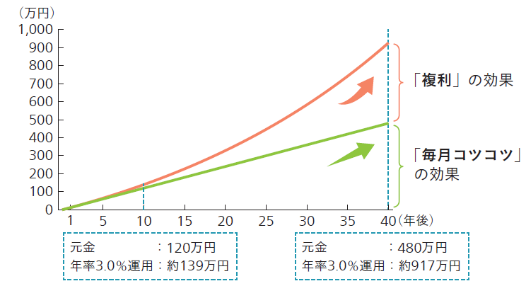 〈例〉毎月1万円積み立てた場合の期間ごとの資産額