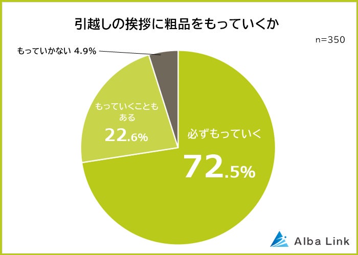・引越しの際に粗品を必ずもっていく人は72.5%