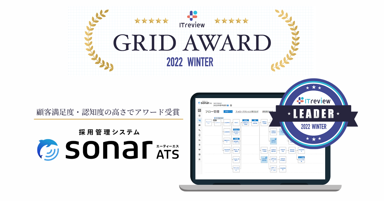 採用管理システム「sonar ATS」、ITreview Grid Award 2022 Winterで「Leader」を受賞