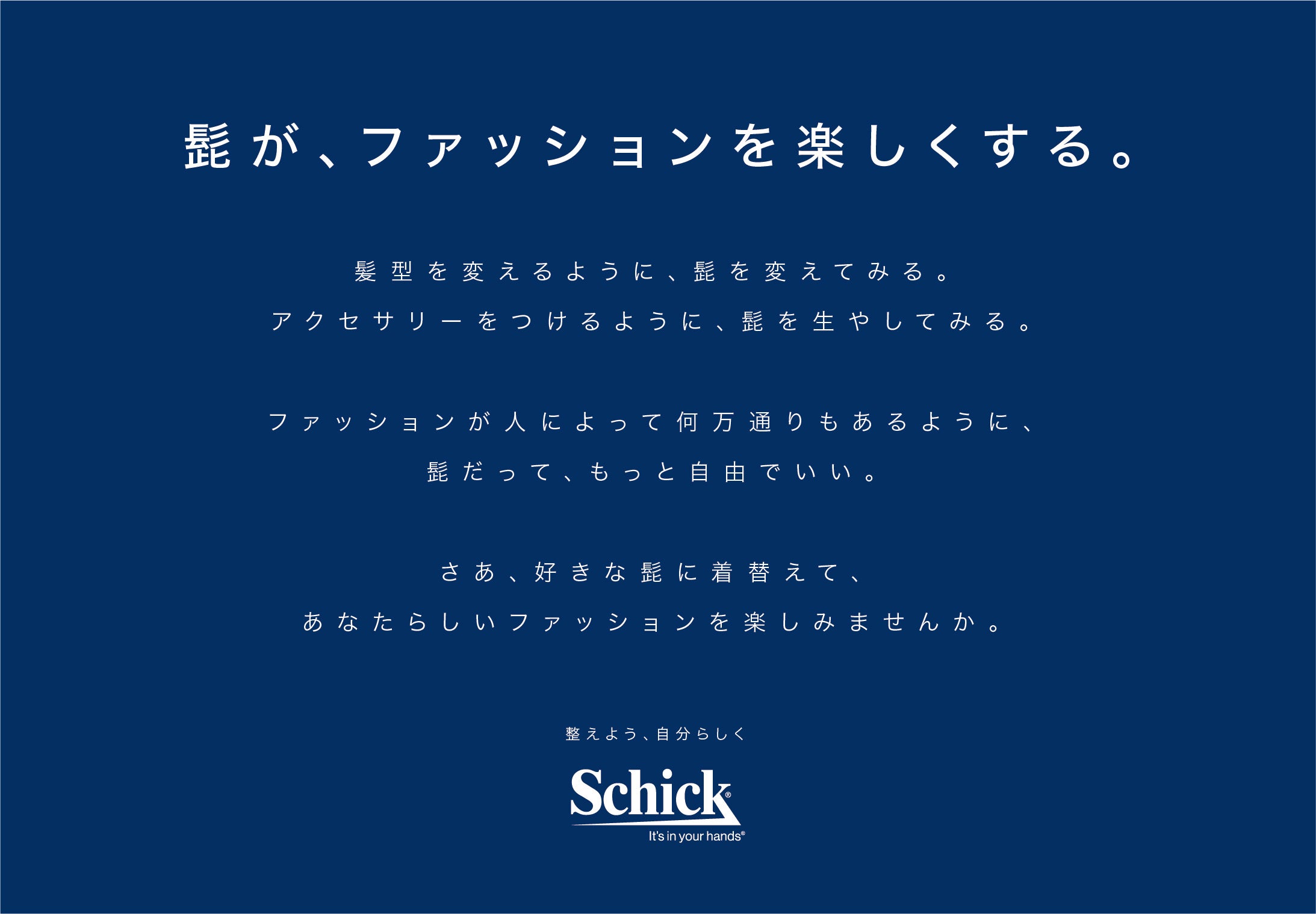 シックでは、ヒゲやシェービングに求められている“多様性”を追求し、これからもさまざまな商品・サービスを通じて、お客様のライフスタイルをサポートしていきたいと考えています。