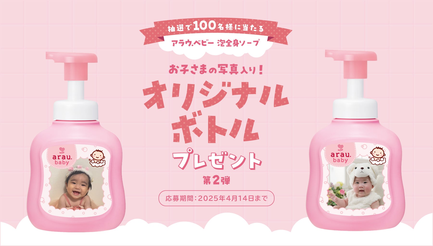 お子さまの写真入りボトルが100名様に当たる! アラウ.ベビー 泡全身ソープ オリジナルボトル プレゼントキャンペーン第2弾を開始