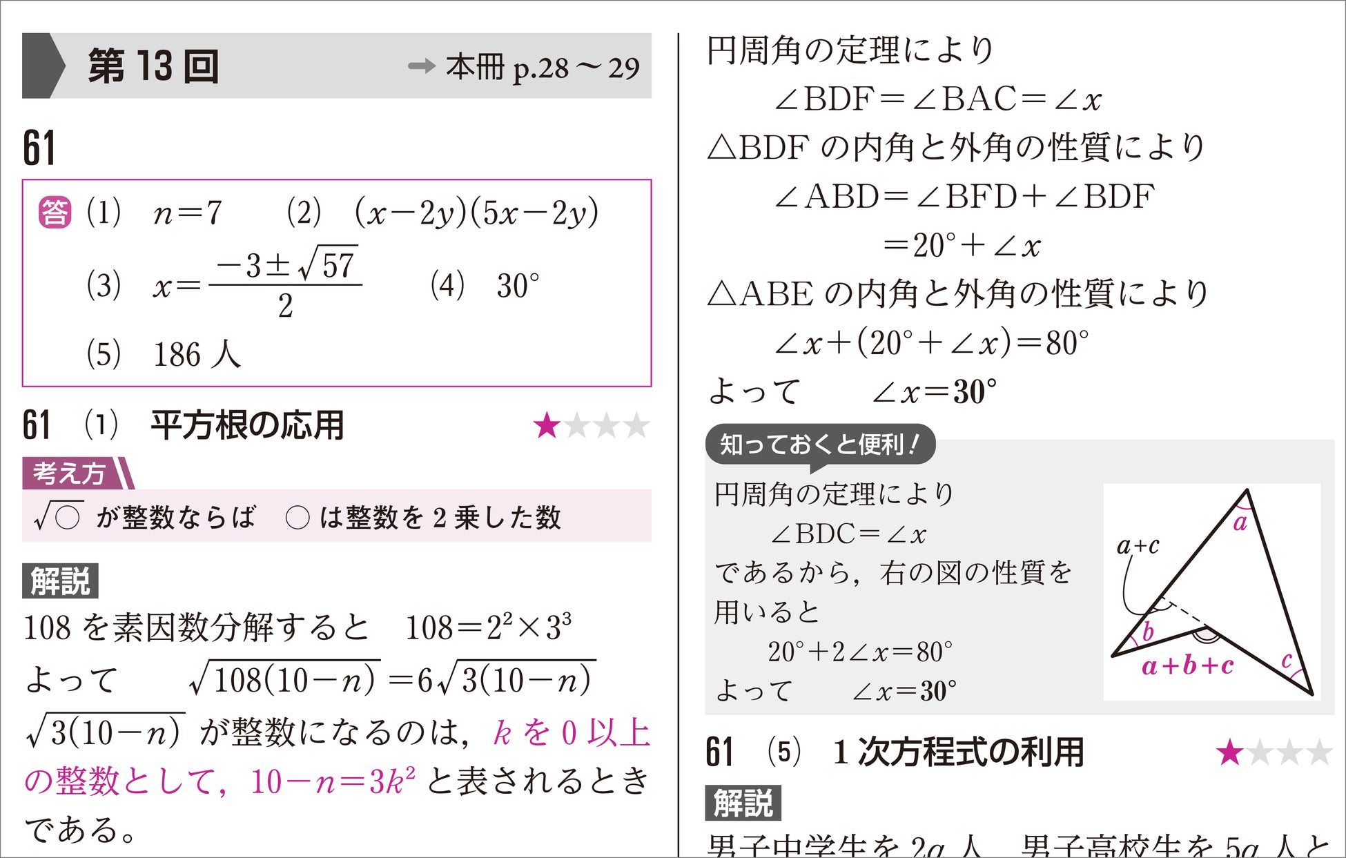 ▲解答編の紙面。「考え方」や赤文字で着眼点を示しました。
