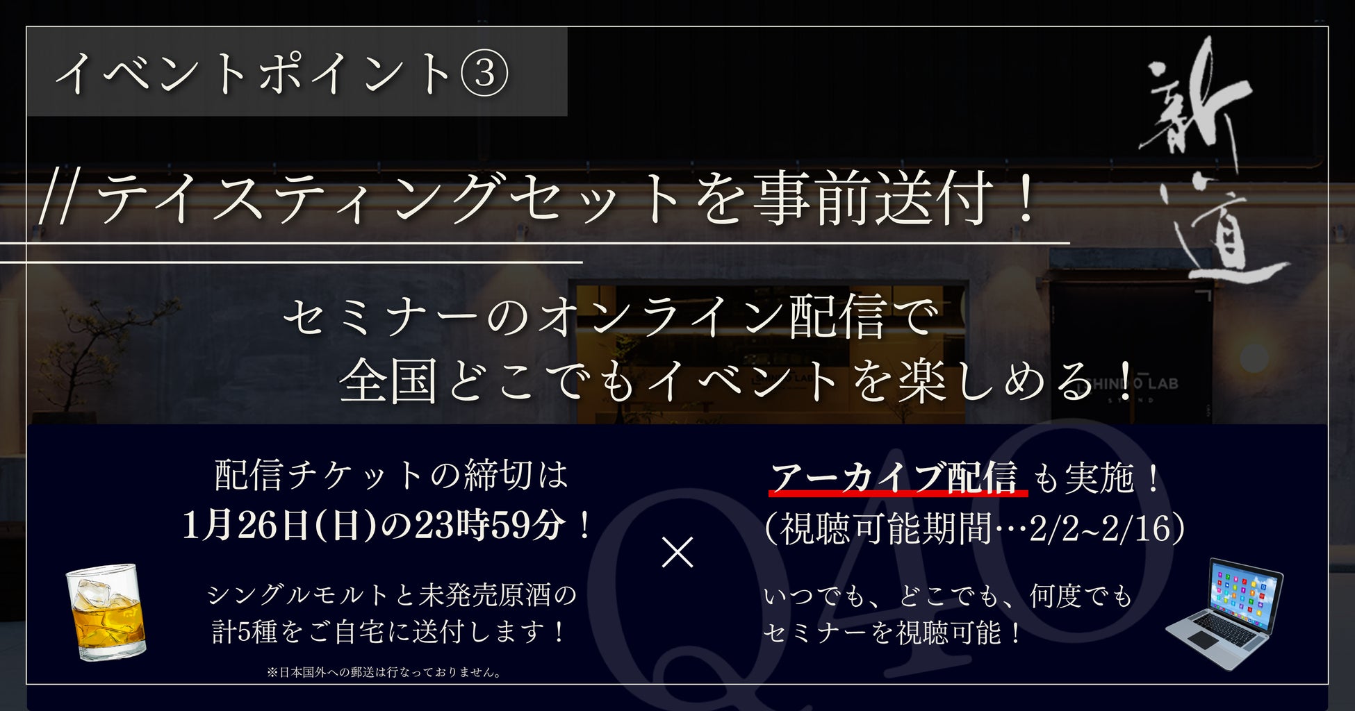 福岡の新道蒸溜所が発売直後のシングルモルトと共に東京上陸!セミナーはテイスティングセット付きオンライン配信も実施!新道蒸溜所の貴重ウイスキーを、新宿の会場で、全国のご自宅で楽しめます!