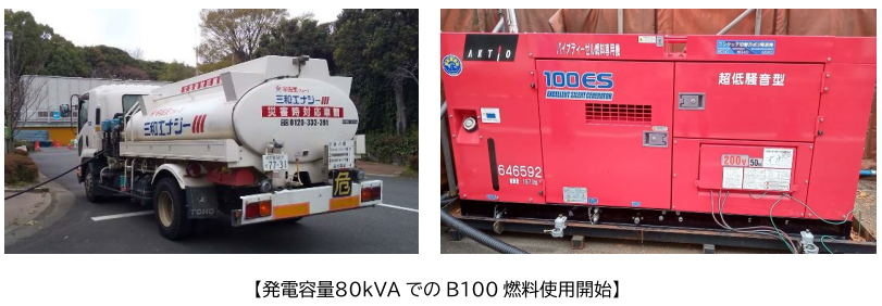 東急建設がバイオディーゼル燃料(B100)を発電機に使用