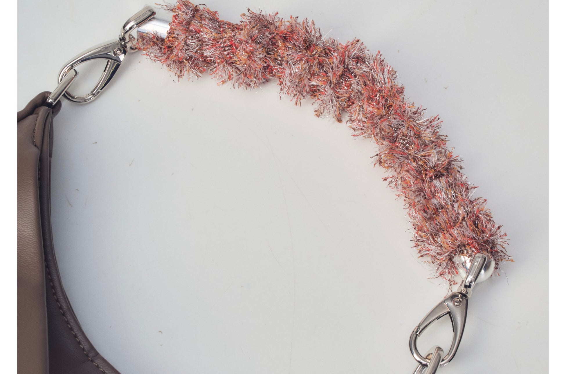 ゴム人工筋肉をバッグ持ち手の骨組みとして活かし、金具部分も無駄なく再活用することでアタッチャブルな持ち手をデザイン。ツイードテープ×金具の相反する個性の融合により、街中でも目立つアイキャッチアイテムに仕上がりました。