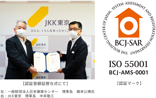 JKK東京(東京都住宅供給公社:東京都渋谷区、理事長:中井敬三、以下「JKK」)は、国内の住宅事業者として初めて、アセットマネジメントシステムの国際規格ISO55001の認証を一般財団法人日本建築センターの審査により取得し、令和4年8月2日に登録証授与式が行われました。