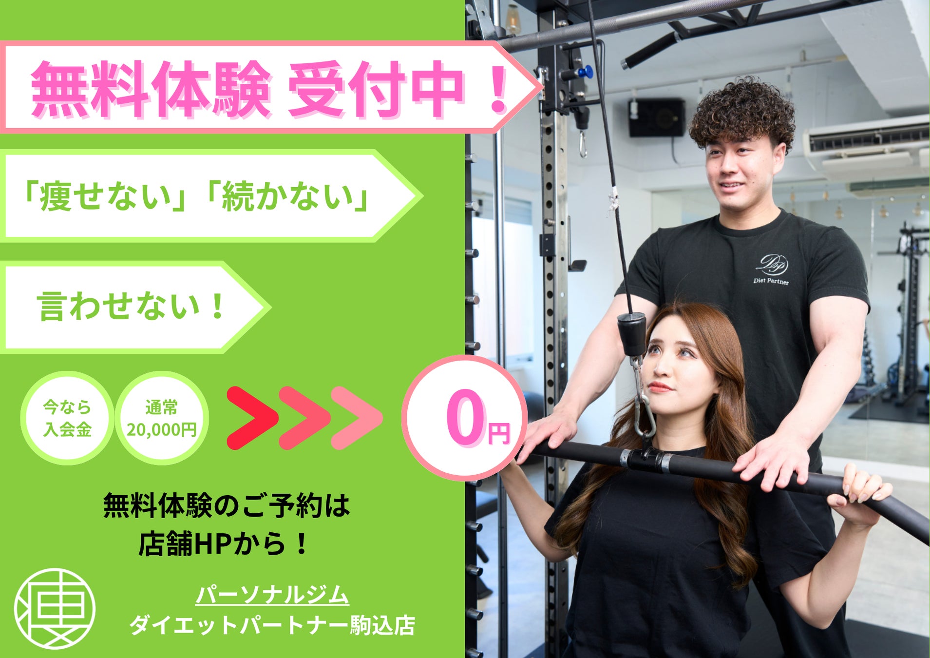 駒込に『安さ◎』『効果◎』『質◎』のパーソナルジム「ダイエットパートナー駒込店」がオープン。駒込で最高顧客満足度を目指します。初心者・女性に優しい環境を提供しております。