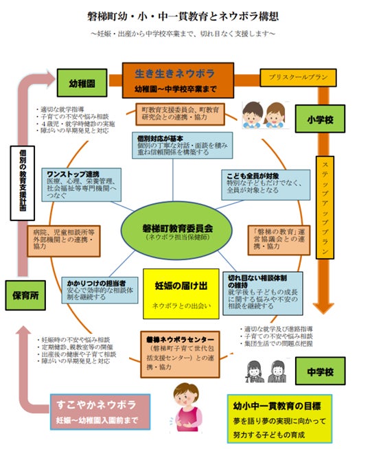 磐梯町では、妊娠から出産、就学から中学校卒業まで、途切れることなく町内すべての子どもたちを対象に、ニーズに合った教育的支援を継続することを理念に置いています。