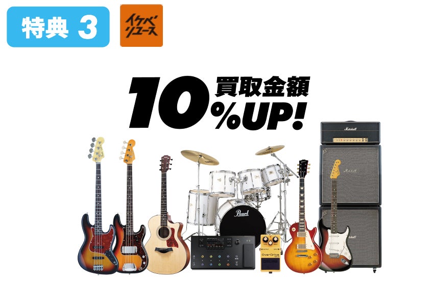 イケベリユースの楽器買取金額が10%UP!