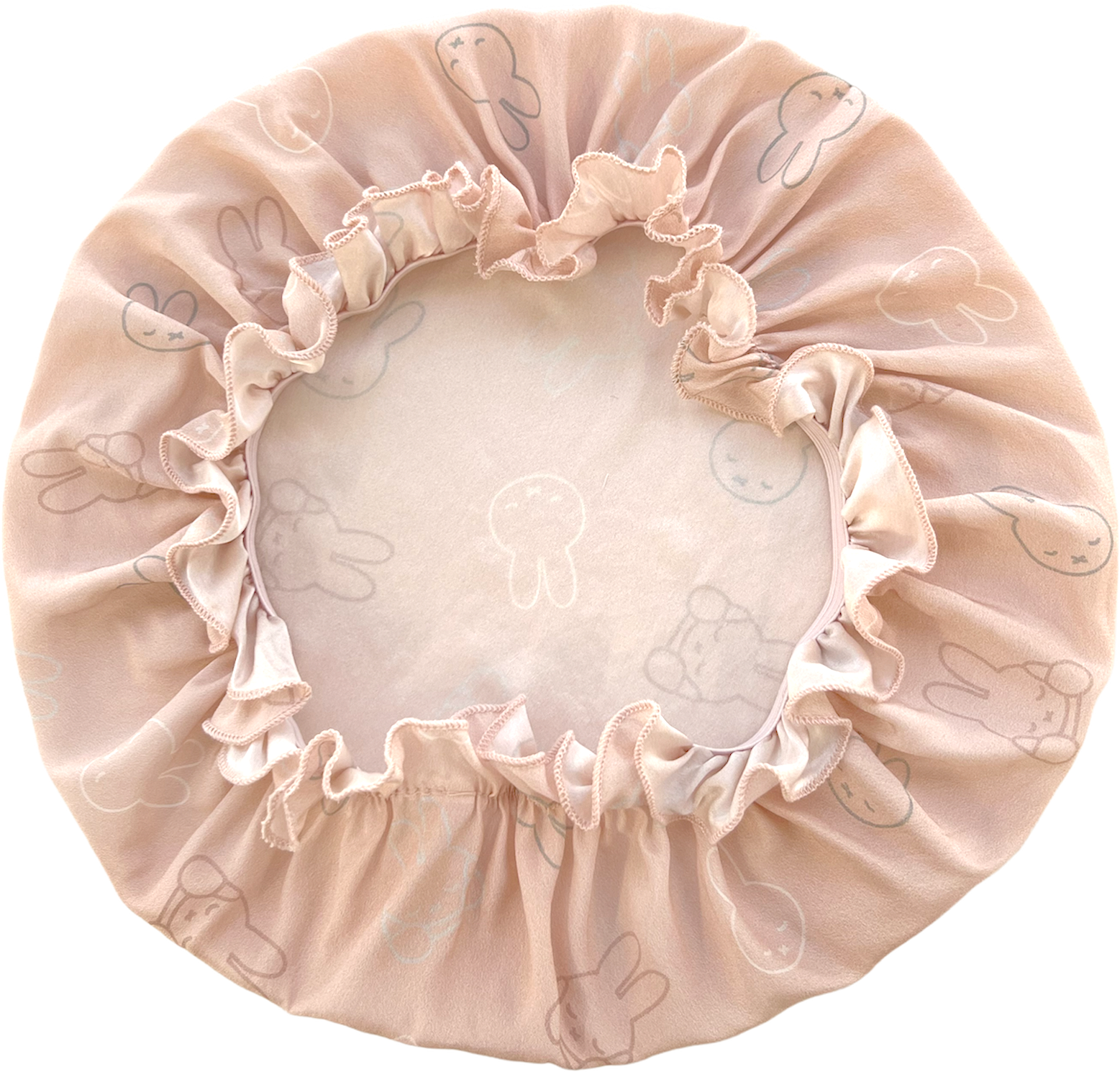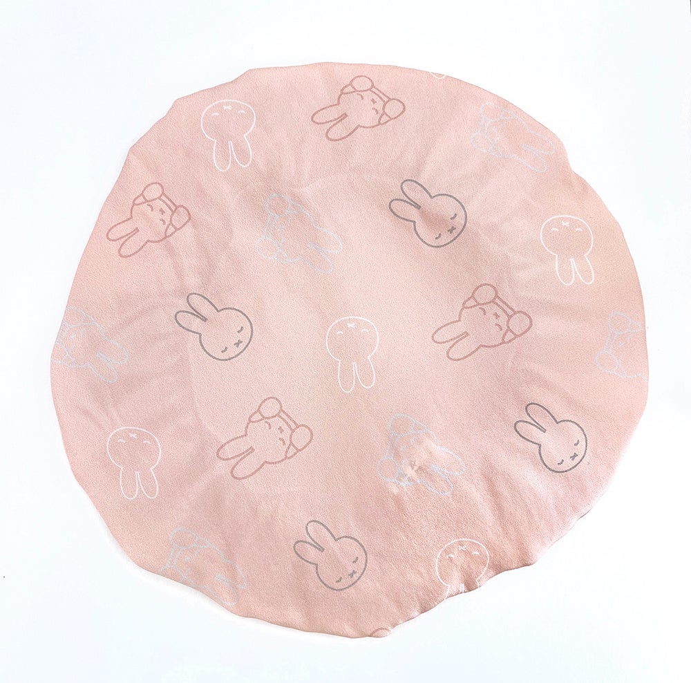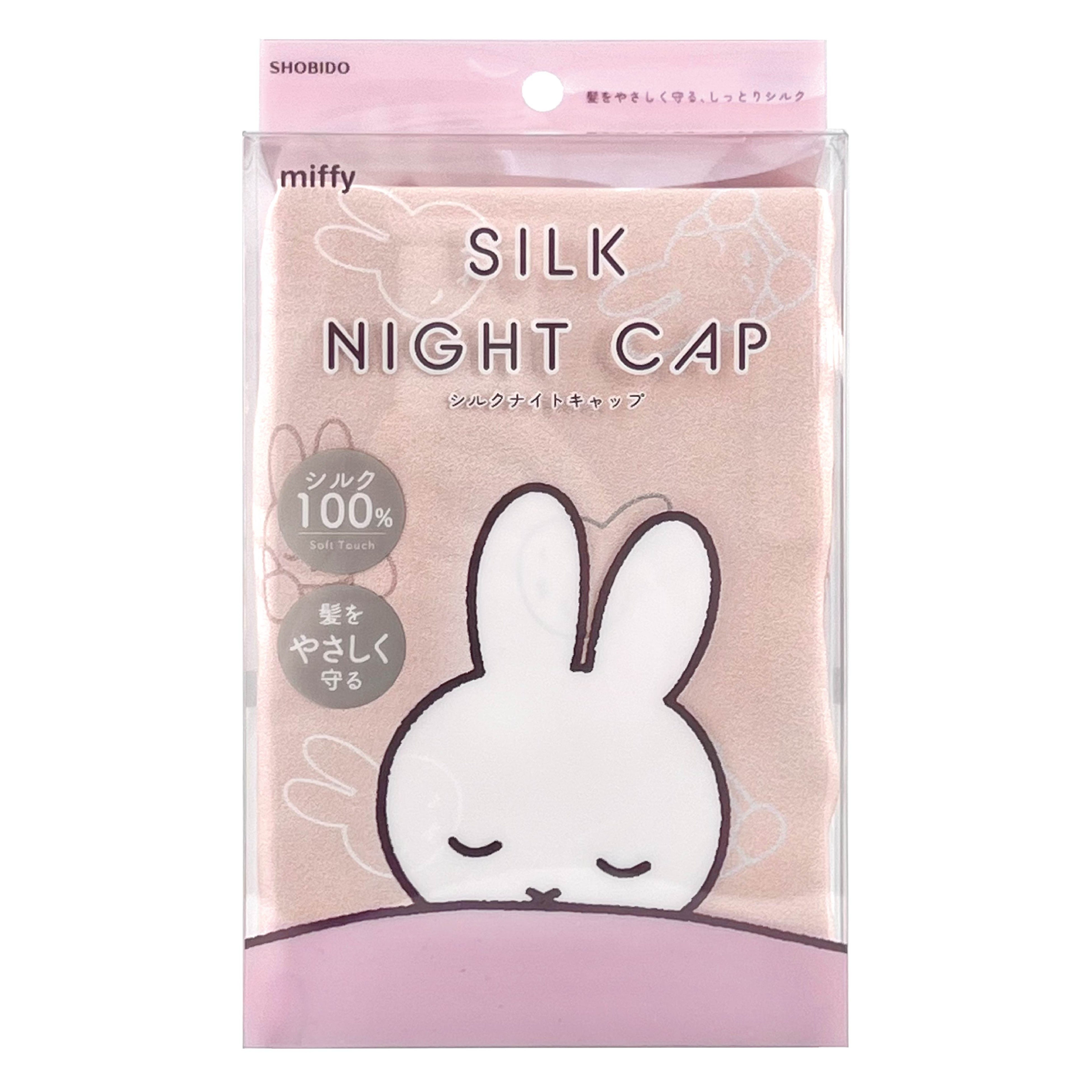 寝具やインテリアの中で主張しすぎないくすみピンクのシルク生地に、ぐっすりおやすみ中のミッフィーがプリントされています。