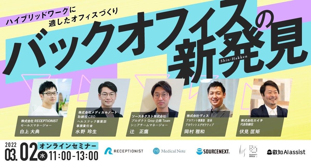 株式会社RECEPTIONISTが主催する「#バックオフィスの新発見」は、バックオフィス部門の方々が抱える課題を解決するターニングポイントになる知識・ノウハウを、様々な企業から共有することで、バックオフィス業務に従事する方や組織のアップデートを目的としたオンラインセミナーです。