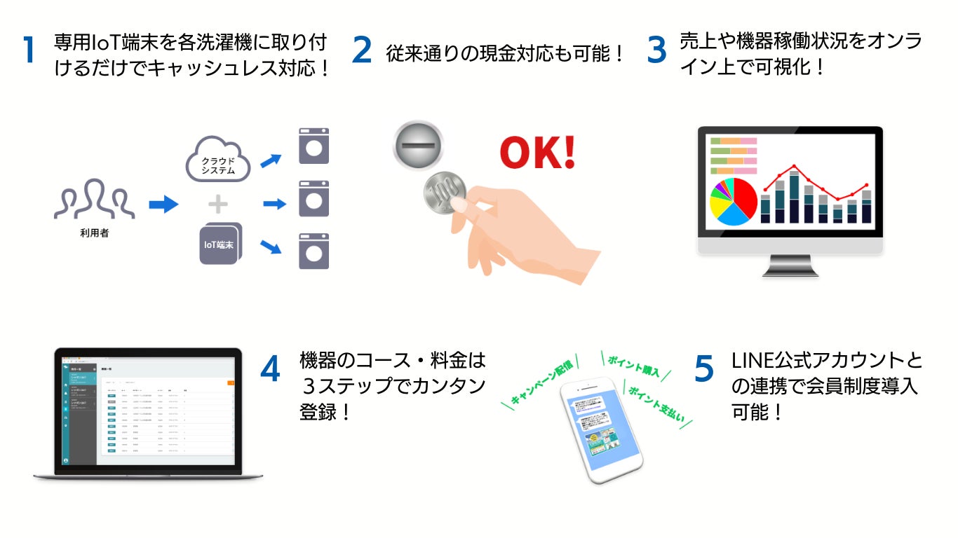 - AdvaNceD IoTキャッシュレス for コインランドリーの5つの特徴