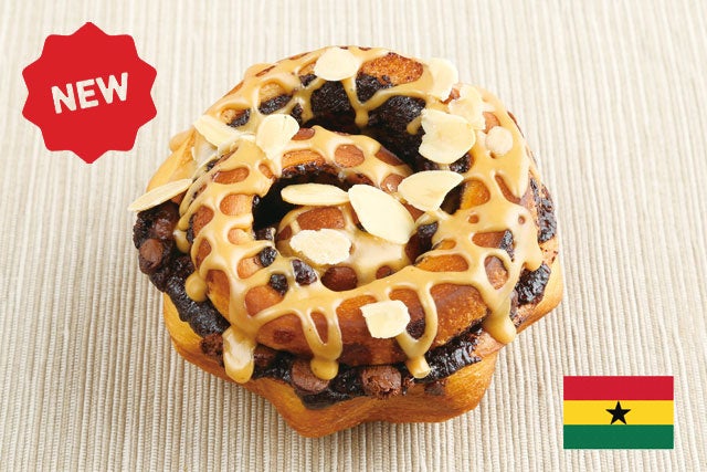 バターと卵の風味豊かなブリオッシュ生地に、ガーナチョコクリームとチョコチップを折り込み焼き上げました。コーヒーグレーズとアーモンドスライスの食感も楽しい!