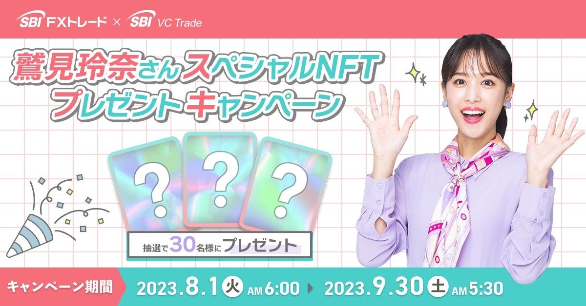 SBI FXトレード株式会社(本社:東京都港区、代表取締役社長:藤田 行生、以下「SBI FXトレード」とSBI VCトレード株式会社(本社:東京都港区、代表取締役社長:近藤 智彦、以下「SBI VCトレード」)は、「鷲見玲奈さんスペシャルNFT」プレゼントキャンペーンを実施いたしますのでお知らせいたします。