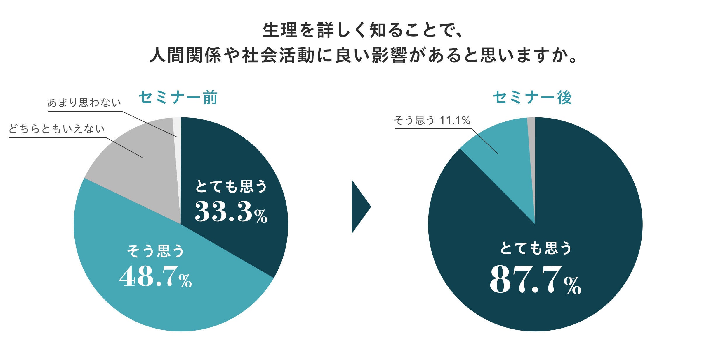 セミナーの前後でとったアンケートでは、生理への理解の深まりに変化が見られました。