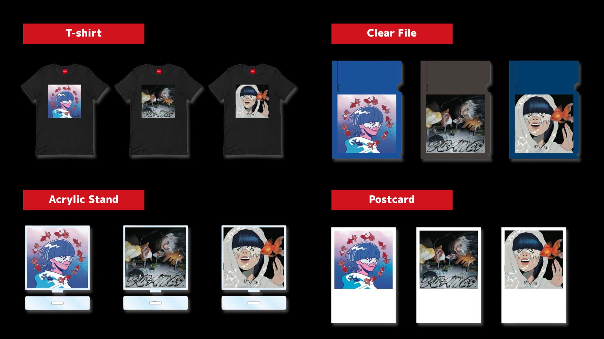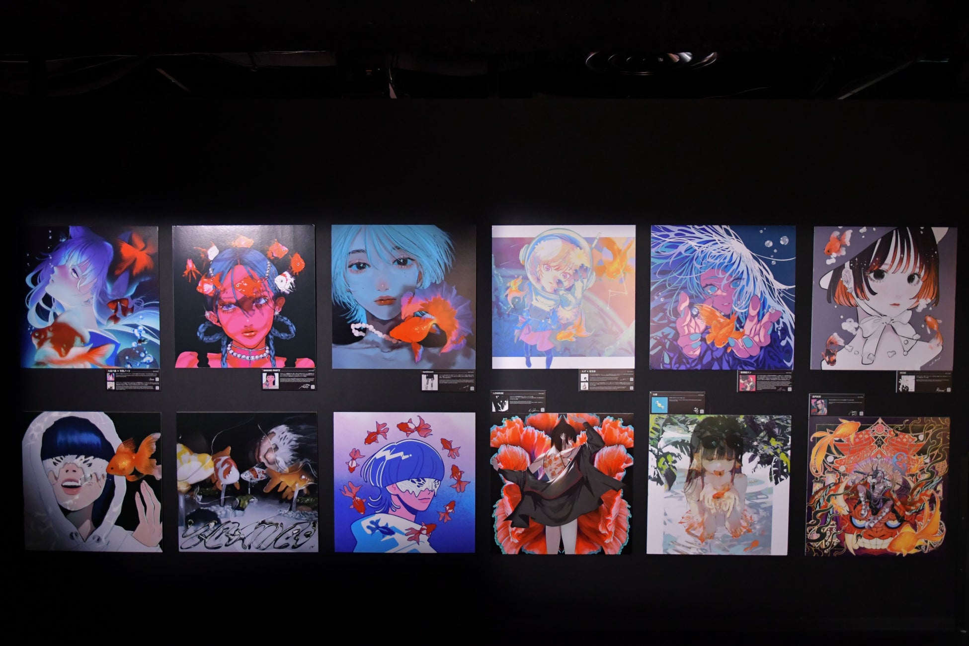 今回新たに展示がスタートする3作品は、全てシンガー「yama」と金魚が描かれたもの。それぞれのイラストレーターが表現する「yama」と金魚の新しいアートをご堪能ください。