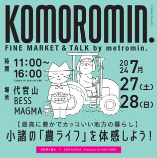 KOMOROMIN(コモロミニッツ)はスターツ出版株式会社が発行するフリーマガジン「METROMIN」(メトロミニッツ)とのコラボレーション企画。『豊かな暮らしのヒントは「ローカルの日常」にある』をコンセプトに毎月20日※3に、東京メトロ53駅157台のラックで10万部を発行している都心のメディアです。昨年の「住みたい街」小諸10ページ特集に続き、今年も7/20号にて小諸の「農ライフ」を6ページ特集。東京メトロを利用する首都圏の生活者に向けて、地方の暮らしの魅力を提案、代官山でのイベントをPRします。