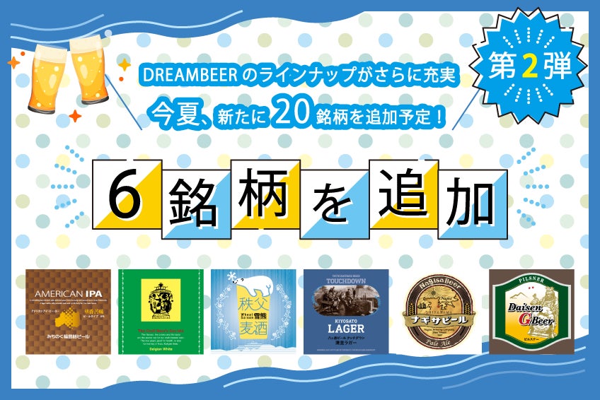 日本全国100銘柄以上のクラフトビールを楽しめるDREAMBEER 今夏に向け、さらに20銘柄を追加しラインナップを拡充!第2弾として2022年6月22日に6銘柄を追加いたします