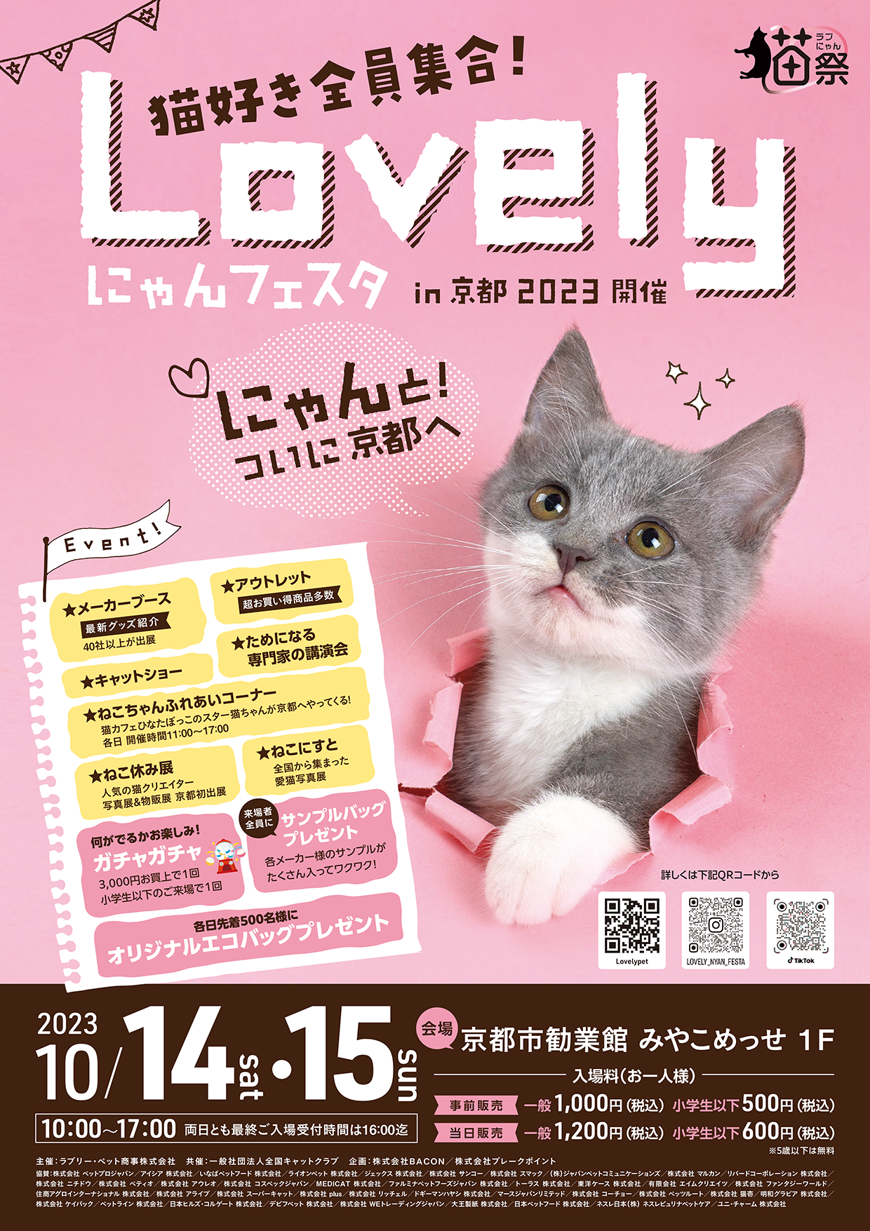 ペットフードやペット用品等の総合卸商社であるラブリー・ペット商事が主催で行う、『猫好きの・猫好きによる・猫好きのためのイベント』で、2023年10月14日(土)~15日(日)に京都市勧業館 みやこめっせ1F (所在地:京都市左京区) にて開催。