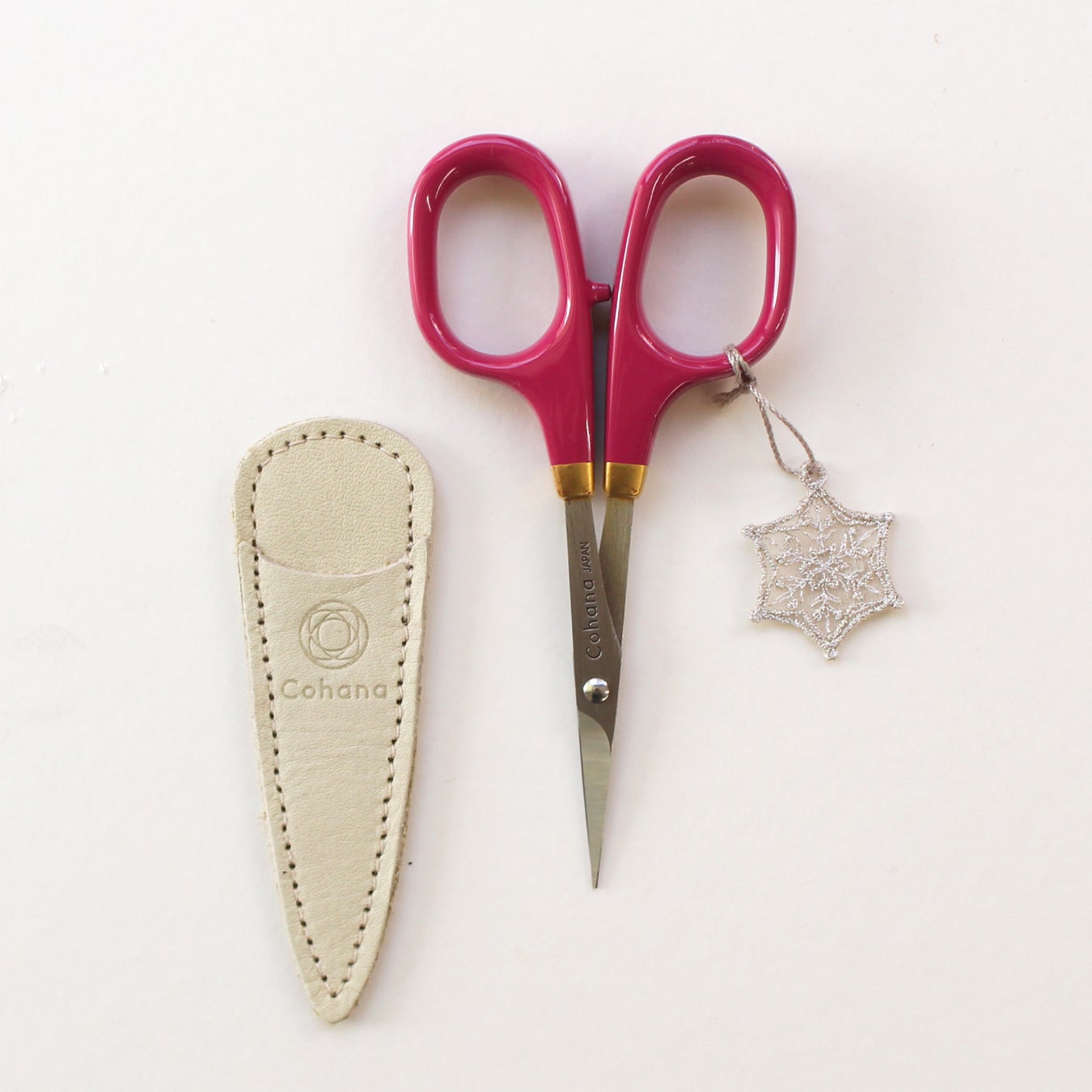 日本有数の刃物の街、岐阜県関市の長谷川刃物さんで作られた、切れ味抜群の小ばさみ。限定カラーのハンドルには高貴な光沢を放つ漆と金蒔絵を施しました。細く繊細な刃先に仕上げられた小ばさみは、こまかい作業に使いやすく、クラフト用・手芸用としてどちらの用途にもおすすめです。限定の雪の結晶のチャームが付いています。
