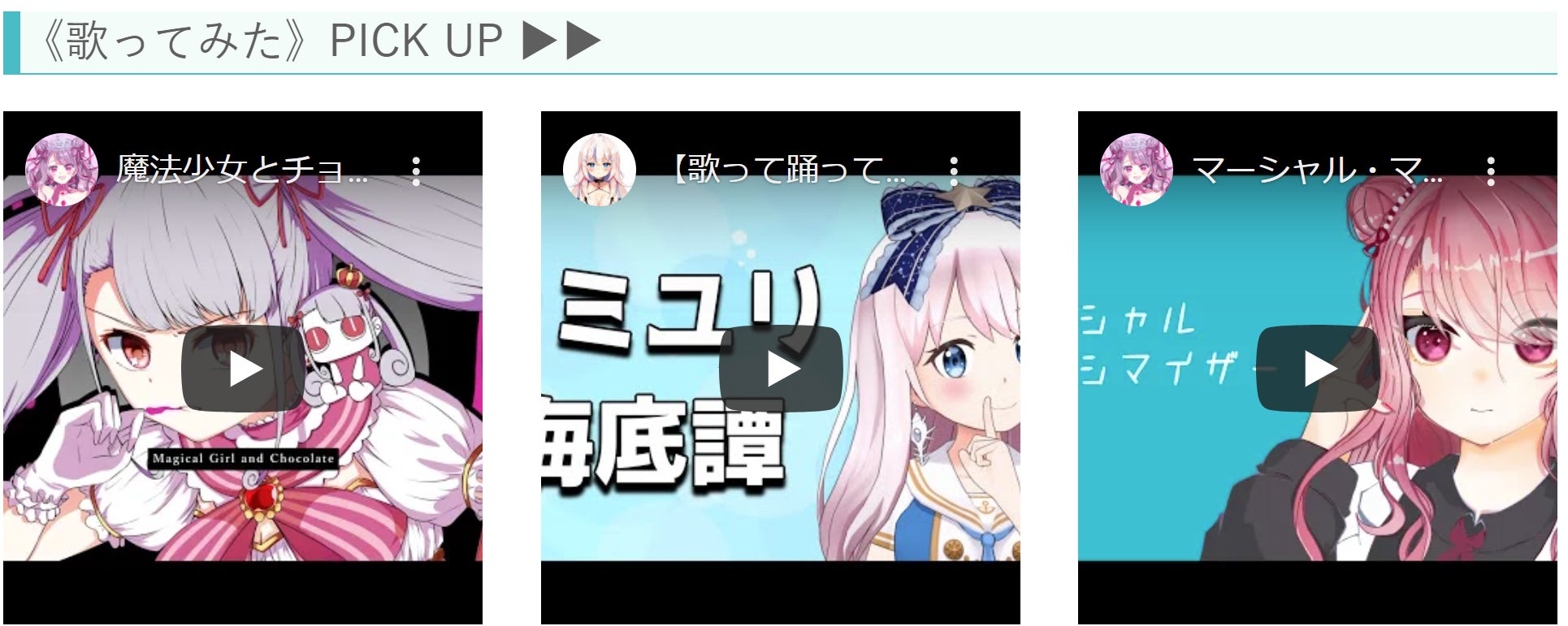 また、最新の「歌ってみた」「Youtube投稿」「ファンアート」をピックアップし掲載しています。