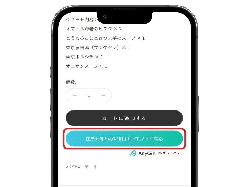 商品ページで「住所を知らない相手にeギフトで贈る」を選択するとeギフトをご利用いただけます。
