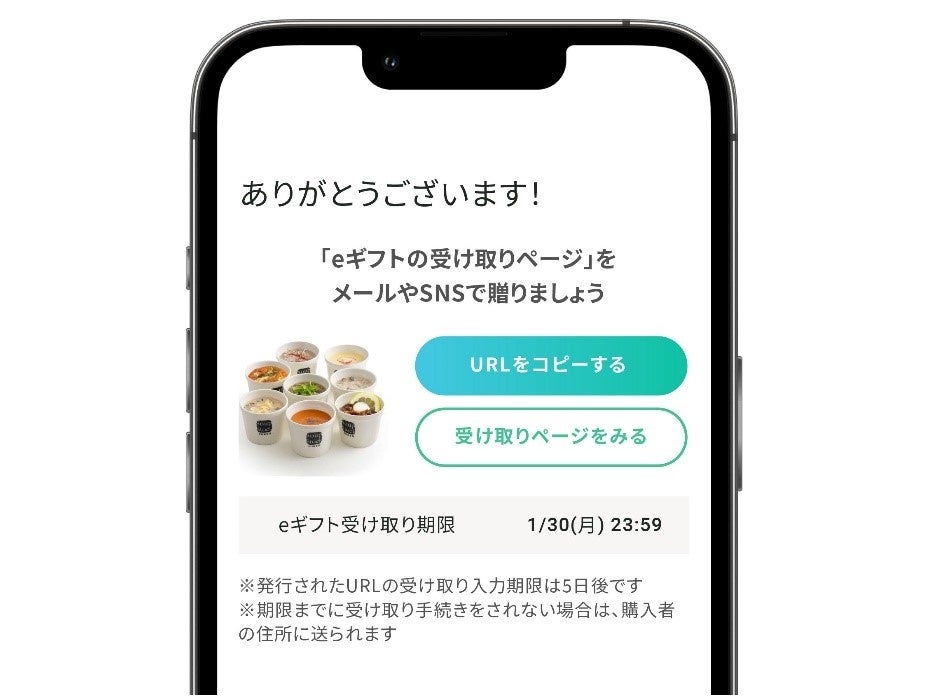 購入が完了すると、eギフトの受け取りURLが発行されます。完了画面でURLのコピーや、受け取りページを確認することが可能です。