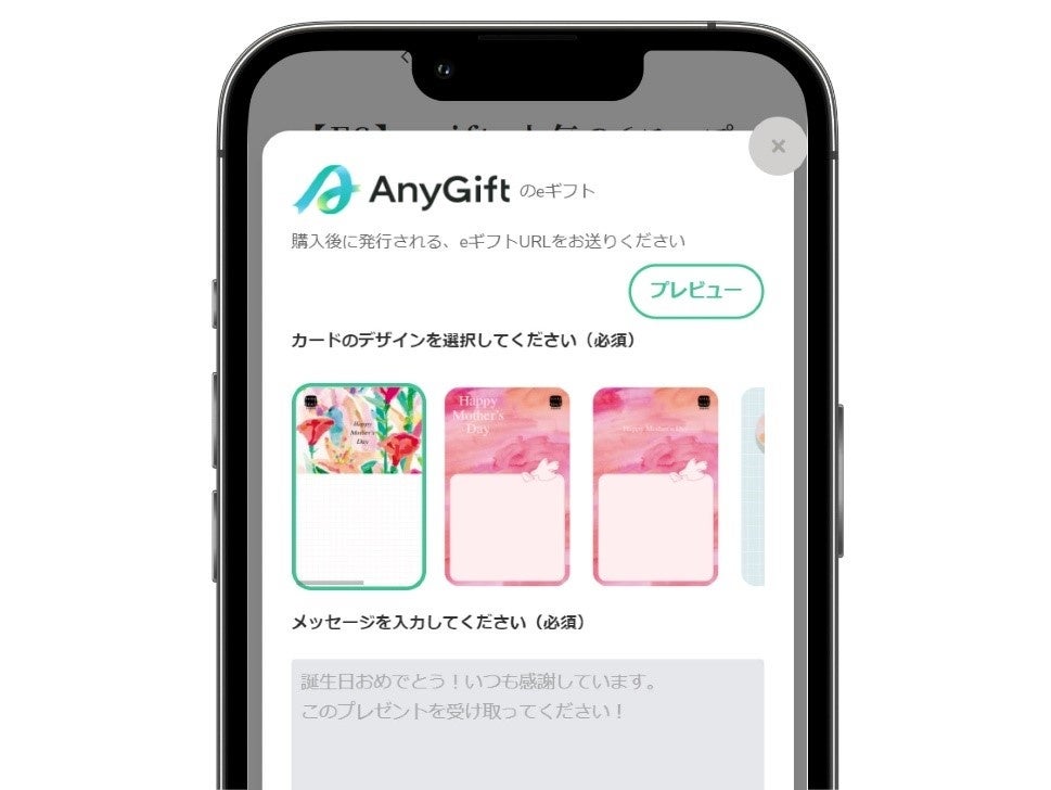 メッセージカードのデザインをお選びいただき、メッセージを入力します。