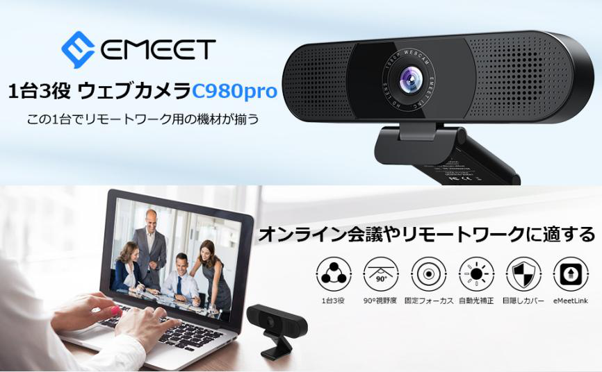 より快適なウェブ会議やオンライン授業を実現できる、eMeet社の人気ウェブカメラC980proについて、対象期間中にAmazonの製品ページにて最大15%オフもの割引が適用される、期間限定セールが実施されます。