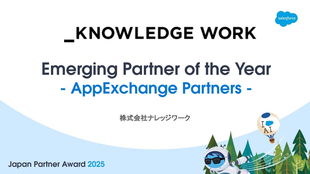 「できる喜びが巡る日々を届ける」をミッションに掲げる株式会社ナレッジワーク(本社:東京都港区、CEO 麻野耕司)は、Salesforce Japan Partner Award 2025におけるEmerging Partner of the Year - AppExchange Partners -を受賞しました。