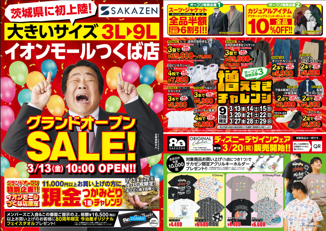 3L~9L大きいサイズの専門店「サカゼン イオンモールつくば店」が3/13(金)NEW OPEN