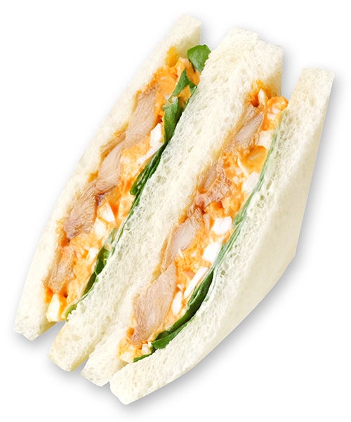 やわらかい食パンで照り焼きチキンとたまごサラダをサンドしました。