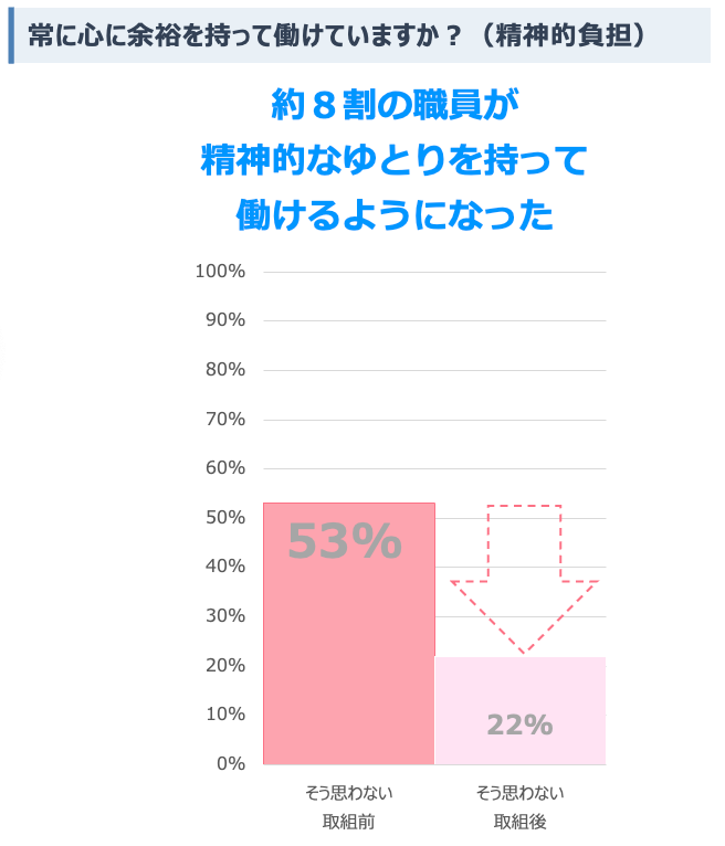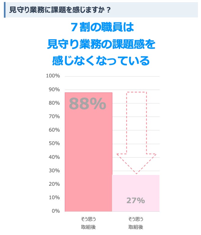 成果:見守り業務に課題を感じる職員が60%減少し、精神的なゆとりを持てるようになった