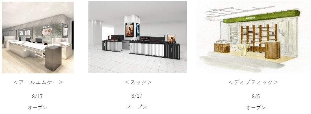 新たにアールエムケー、シュウ ウエムラ、スック(3ブランドとも8/17)を迎え、コロナ禍によるマスク生活の定着、行動制限がなく人と会う機会が増えたことによるカラーメイクへの需要の高まりや段階的に増加傾向にあるインバウンド市場を見据え、日本発ブランドを集約し、訪日観光客やZ世代を意識した売場づくりを提案します。また、価値観や価格帯が多様化する中でも、タッチアップやイベントなどエキサイティングなブランド体験サービスを創生し、実店舗の魅力向上を目指します。