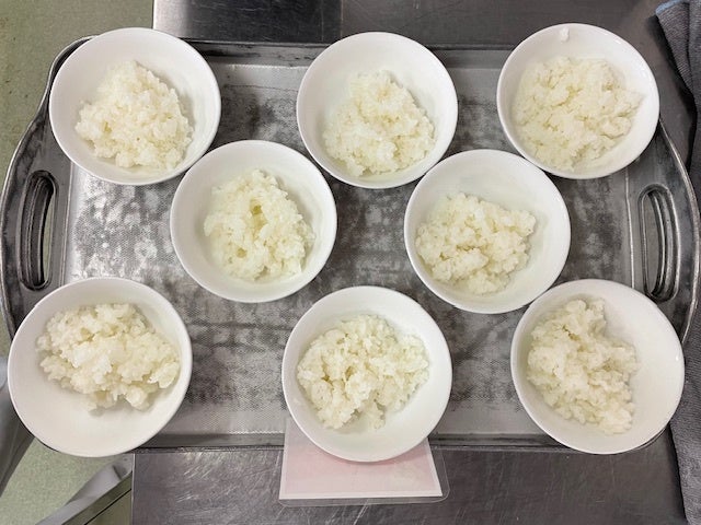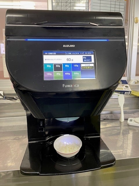 Fuwaricaは各保育所の調理室に設置され、調理スタッフが年齢に合わせた量目で盛付けが可能となります。事前に設定した量目ごとのボタンを押すだけで盛付けができるので、適正量の確認や、多数盛付けることによる負荷から解放されることが期待されています。ご飯の量は、0歳児から2歳児で80グラム、3歳児から5歳児までが120グラムが目安となっています。