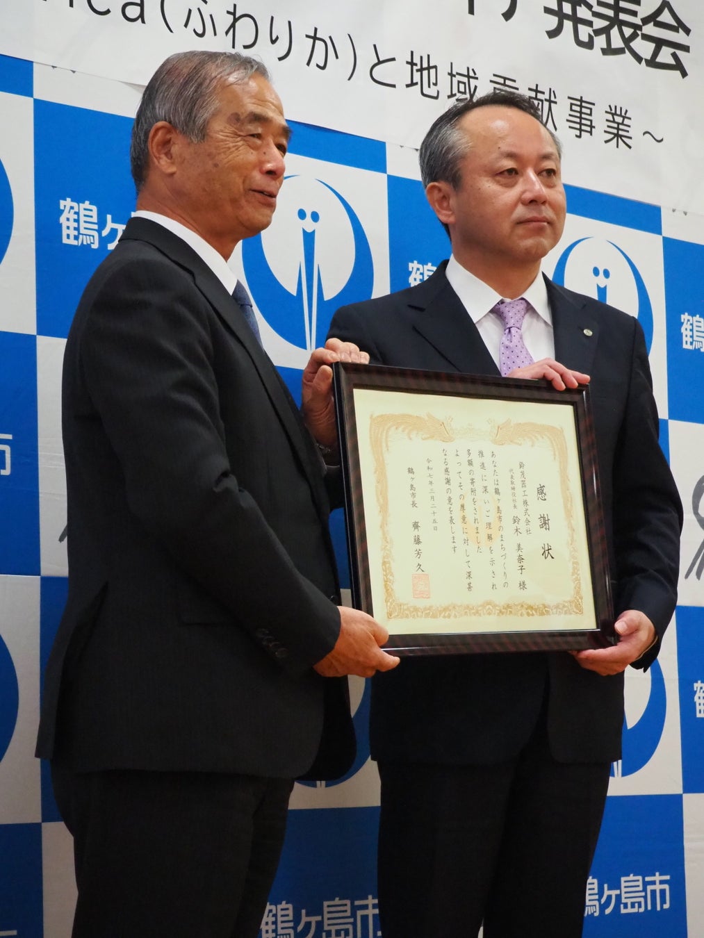 齊藤市長「鶴ヶ島市で作られた製品で提供された給食を食べて育った子どもたちに世界へ羽ばたいてもらいたい。」