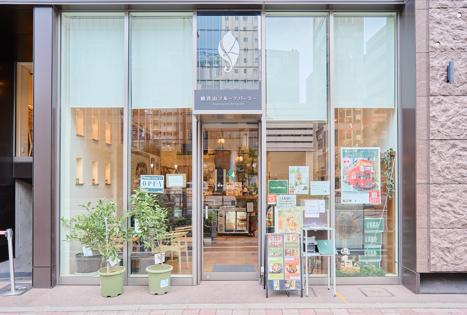 観音山の代表格である柑橘(オレンジ)と山形県産のサクランボ(赤)、観音山産のキウイ(緑)を活かした観音山フルーツパーラー銀座店提供のパフェやフルーツサンドが楽しめる!