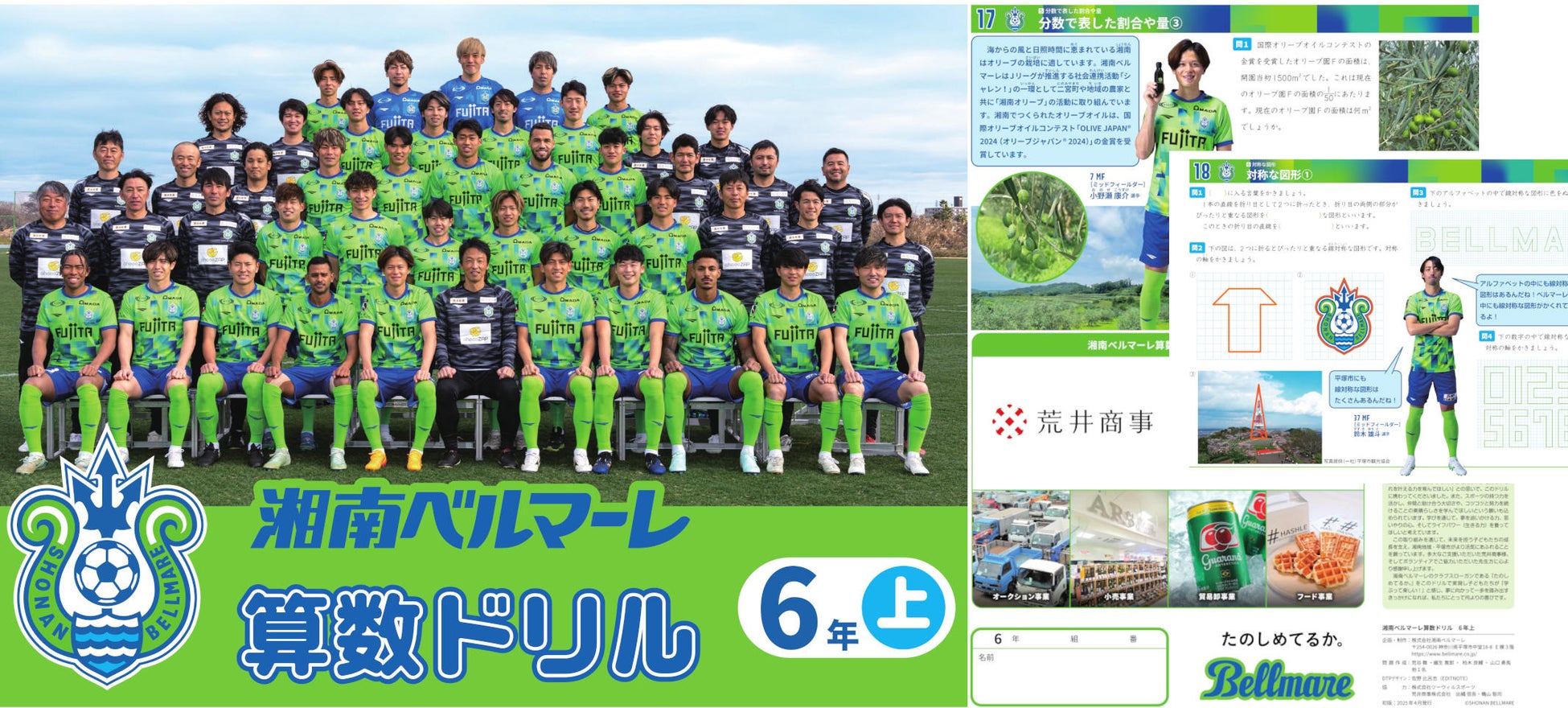 荒井商事株式会社 (本社:神奈川県平塚市 代表取締役社長:荒井亮三) は、 オフィシャルクラブパートナーとしてサポートしています湘南ベルマーレと、算数ドリルプロジェクトの趣旨に賛同いただいた県内の小学校の先生方と共同で、小学校6年生向けの教材 「湘南ベルマーレ算数ドリル 6年生 上」 を制作いたしました。 本算数ドリルは、今年度より平塚市内すべての市立小学校29校に通う 約1800人の小学6年生に配布予定です。